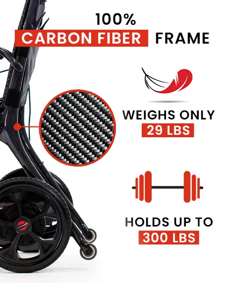 - Weighing a mere 29 lbs. (without batteries) and fabricated from premium carbon fibre